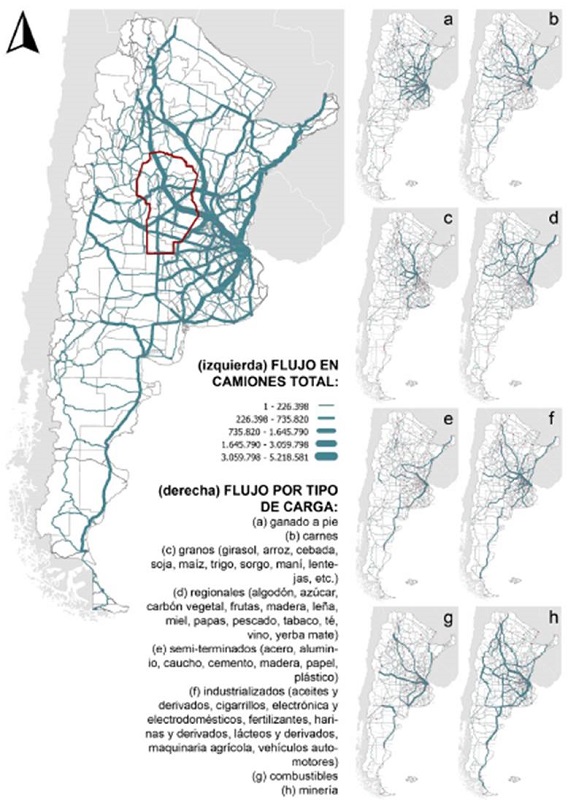 Por otro lado, la posición estratégica de esta región en el país la convierte en el paso obligado de las principales rutas nacionales de distribución y exportación de materias primas y manufacturas (Figura 3). Las Figuras 1 y 2 muestran esta red de movilidad y transporte a escala local, compuesta por la autopista Córdoba-Rosario, las rutas nacionales, provinciales y la intrincada trama de caminos secundarios y senderos rurales.