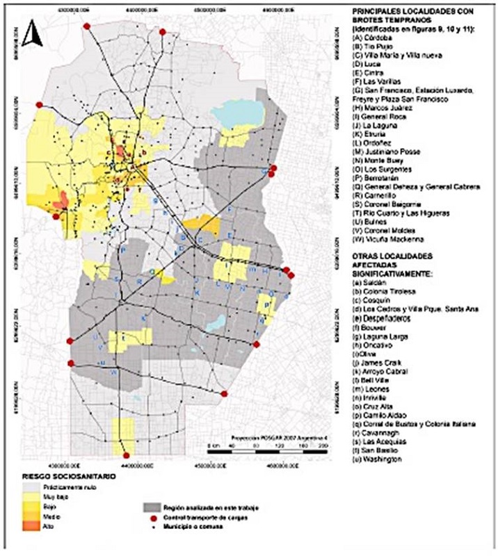 La información se procesó reconstruyendo en primer lugar el sistema de producción y movilidad de mercancías y personas en la región, y luego los patrones de contagio durante el período estudiado. A continuación, se contrastaron con los de la Región Metropolitana de Córdoba (RMCba) -la mayor región metropolitana cercana a la zona estudiada- y los de la provincia en general, para establecer tendencias y particularidades atribuibles a su condición de paisaje operativo inserto en esquemas globales de urbanización.