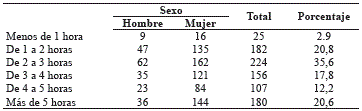 Una gran parte del alumnado está bastante tiempo conectado a Internet: algo más de un 50% más de 3 horas al día (n=443), un 20,6% (n=180) más de 5 horas (tabla 3).