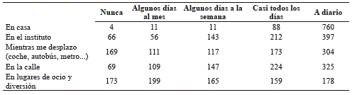 En relación con el tiempo y lugar de conexión no se muestran diferencias significativas en cuanto al género, tal y como plantean trabajos previos (Gross, 2004, Rial- Boubeta, Gómez-Salgado, Isorna-Folgar, Araujo-Gallego & Varela-Mallou, 2015). Si se han detectado diferencias reseñables en cuanto a la dependencia en el empleo del móvil, aquí las chicas muestran una mayor dependencia en su empleo y manifiestan su inquietud en caso de no tener acceso a los mismos, generando estas actitudes conflictos frecuentes con sus padres.