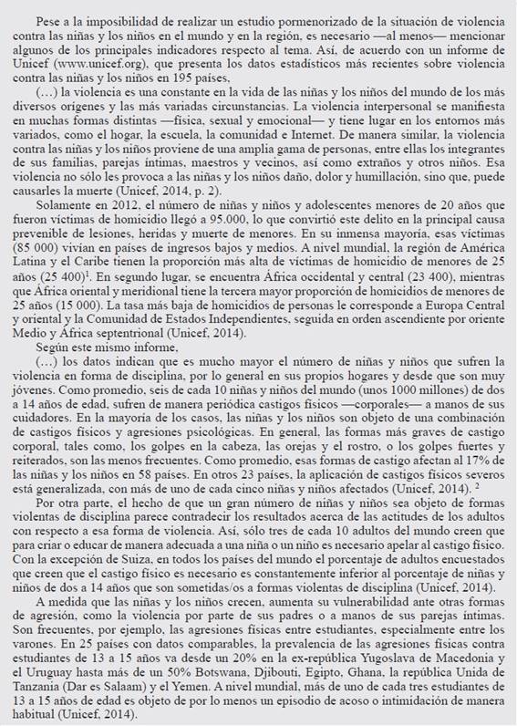 Unicef. (2014). Hidden in plain sight. A statistical analysis of violence against children. Nueva York: Unicef.