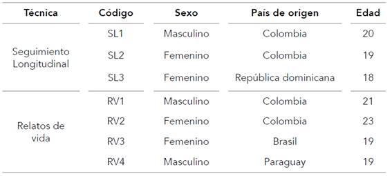 La primera fase se ejecutó entre octubre del 2015 y julio del 2016 mediante el acompañamiento socioeducativo a jóvenes que habían dejado de vivir en centros residenciales de protección de Galicia y a partir de la construcción de sus relatos de vida. La emancipación es un proceso marcado por la temporalidad, lo que hace aconsejable un seguimiento, para el que la investigación cualitativa longitudinal es especialmente indicada (Holland et al., 2006). El acompañamiento, en este caso a tres jóvenes, se realizó durante los seis primeros meses de su vida independiente. Ellos mantenían abierto un expediente administrativo con medida de apoyo familiar. La observación la efectuó la propia figura profesional durante los primeros momentos de la transición a la vida adulta, quien procuraba minimizar el impacto que podría producir la presencia del investigador (Ruiz, 2012). Esta técnica nos permitió registrar fenómenos de interés para los objetivos del trabajo, que se contrastaron con los resultados de los relatos de vida. En este caso, los jóvenes emancipados reflexionaron sobre su experiencia vital con los recursos de protección, así como sobre los aspectos relevantes durante su proceso de transición a la vida adulta. Se inició la construcción de los relatos de vida con seis participantes. El criterio de elección de la muestra es que llevaron al menos seis meses fuera del Sistema de Protección. Se completó la obtención de la información en cuatro casos (tabla 1).