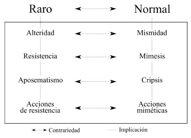 El binomio normal ↔ raro tiene una implicación directa con el de mismidad ↔ otredad. En este sentido, se trata de una pregunta por la identidad; una pregunta de orden ontológico que plantea ser o no ser. Esta situación -que se encuentra en las tres obras- la analizaremos con la narración de Sebastián en una escena que es un monólogo: