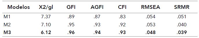 A partir de la propuesta teórica de Hewitt y Flett (1991a), se sometió a prueba un primer modelo (modelo 1) cuya estructura factorial estaba compuesta por tres dimensiones: perfeccionismo autorientado (16 ítems), socialmente prescrito (9 ítems) y orientado a otros (7 ítems); sin embargo, el ajuste de este modelo no resultó adecuado. Seguidamente, atendiendo a que la medición del perfeccionismo autorientado involucra dos subdimensiones independientes, se piloteó un segundo modelo de tres dimensiones (modelo 2), en el que la dimensión intrapersonal se construyó a partir de dos parcelas que incluían los ítems de las subescalas de autodemandas y reacciones ante el fracaso, respectivamente. Este modelo consiguió un mejor ajuste, el cual fue posteriormente optimizado (modelo 3), con la introducción de covariancias entre residuos de dos pares de ítems de la dimensión socialmente prescrita, según lo sugerido por los índices de modificación, a saber: «Mis padres me exigen tanto que nunca los puedo dejar contentos» (ítem PSP5) con «Siento que no puedo cumplir con todo lo que mis padres esperan de mí» (ítem PSP9), por un lado, y «En mi casa me castigan (me retan) si no hago las cosas perfectas» (ítem PSP6) con «Mis padres critican todo lo que hago (encuentran errores en todo lo que hago)» (ítem PSP2), por otro.