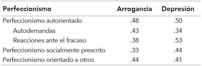 La relación entre la arrogancia y el perfeccionismo socialmente prescrito ha sido menos estudiada. Es probable que muchos niños con alto perfeccionismo socialmente prescrito provengan efectivamente de hogares donde los padres, también perfeccionistas, exijan desempeños impecables y logros destacados; la relación entre el perfeccionismo parental y el perfeccionismo infantil ha sido ampliamente probada (Clark & Coker, 2009; Cook & Kearney, 2014; Ocampo, 2008). Ante esto, es habitual que los niños desarrollen comportamientos destinados a cumplir con esas demandas irreales, despertando la necesidad de mostrarse perfectos, autosuficientes y mejores que los demás. El surgimiento de la arrogancia podría estar cimentado precisamente en esta dinámica parento-filial. Cabe destacar, no obstante, que esta aparente superioridad de los niños perfeccionistas no reflejaría una autovaloración positiva, sino un modo de autoprotección del yo, ya que la autoestima de los perfeccionistas suele ser frágil y contingente a los logros (Hewitt et al., 2003).