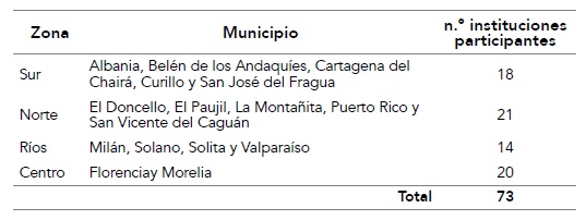 La investigación se realizó en los 16 municipios que conforman el departamento del Caquetá. De allí se eligió un grupo de instituciones que participaron a través de sus directivos docentes en este estudio. Para ello, se empleó un muestreo por criterio, en el cual «todos los casos que tienen algún criterio de selección son útiles para la garantía de seguridad » (Creswell, 2013, p. 74). De esta forma, la selección de la unidad de trabajo consideró los siguientes criterios de inclusión: a) disposición y voluntad para participar en la investigación; b) haber participado en las convocatorias del Programa Ondas en la región en los años 2019 o 2020; c) haber participado en al menos una convocatoria del Programa Ondas en años anteriores al 2019; d) ser una institución pública perteneciente a la Secretaría de Educación Municipal de Florencia o a la Secretaría de Educación Departamental; e) el directivo docente o rector debía estar vinculado a la institución al menos desde el 2017. Los criterios de exclusión fueron: primero, instituciones que no han participado en el Programa Ondas desde sus inicios en el departamento; y, segundo, instituciones cuyo directivo docente (rector o rectora) llevara menos de un año en el cargo.