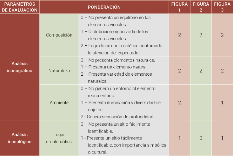 Se presenta la siguiente tabla (Figura 4) con el propósito de determinar si las obras previamente mencionadas cumplen los requisitos establecidos para el análisis iconográfico e iconológico, centrándose en una perspectiva paisajista. Para ello, se establecen las siguientes categorías de observación: