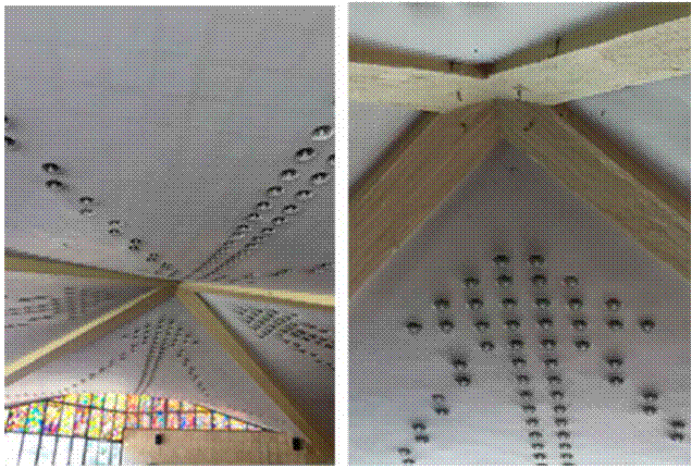Así entonces, el proceso de construcción de un paraboloide contempla los siguientes pasos: dados cuatro puntos en el espacio, que no estén en un mismo plano, hay un único paraboloide hiperbólico que pasa exactamente por estos cuatro puntos. Esta es la misma propiedad que dice que dos puntos determinan una única recta. Constructivamente, lo que tenían que hacer los obreros era unir con barras uno de los pares de puntos de una parte y el otro par opuesto por la otra.