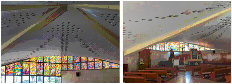 Abstract: Liturgical celebration space celebration is translated into a formal expression that denotes the ideas of architects and builders. This paper includes an analysis of the Chapel of the Palafoxian Major Seminary in Puebla, dating from 1964. The chapel now serves mainly to seminarians, although sometimes it is used for external celebrations. The object of the present text to describe the relationship between the geometric solution and the structural design based on hyperbolic paraboloids materialized in reinforced concrete shells. The design and architectural expressions are completed by stained glass windows, work of Fernando Rodríguez Lago. The methodology used includes literature review about concrete shell buildings in different latitudes, field visits and interviews with key actors involved in the materialization of the Palafoxiano Seminary building. The main objective is to show the building as a way of conceiving religious spaces in the 20th century.
