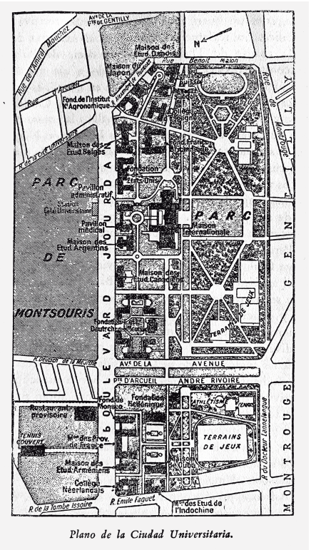 Paralelamente en América Latina, más allá del modelo institucional y pedagógico que ofreció el concepto de campus, se optó por el termino Ciudad Universitaria, el cual entró en uso desde principios de la década de 1920 por la influencia que tuvo la Cité Universitaire de París. Esta urbanización compartía muchos de los principios del campus pero estaba inserta en la ciudad y sólo se circunscribía al tema habitacional y deportivo y no incluía las demás partes de la vida universitaria (Figura 2). De ahí que, aunque se adoptara el termino traducido al español, realmente la primera verdadera Ciudad Universitaria con el sentido integral que éste tendría fue la Ciudad Universitaria de Madrid de 1928.4