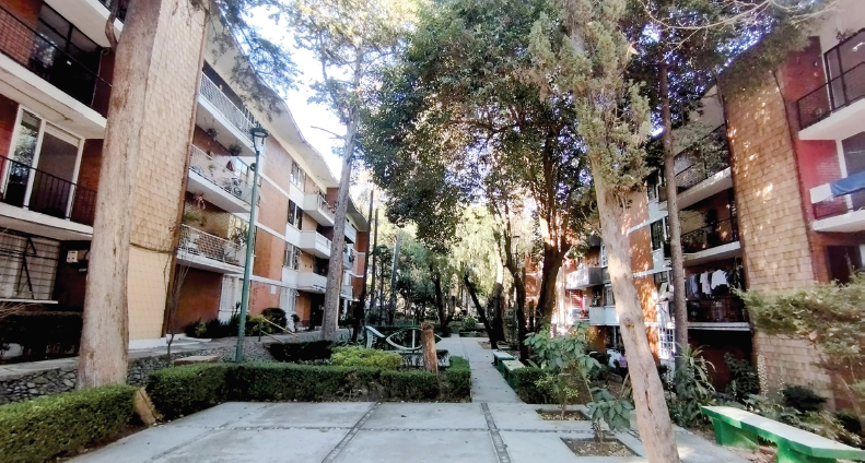 Como sucedió en los anteriores multifamiliares, los apartamentos que en principio eran de alquiler pasaron a ser propiedad de sus moradores y los espacios comunes debieron ser administrados por las propias comunidades. El cuidado de estos espacios se ha visto más favorecido que en los anteriores centros urbanos, pues en Tlatelolco muchos vecinos cultivan jardines y huertas comunitarias22 (Figura 7).