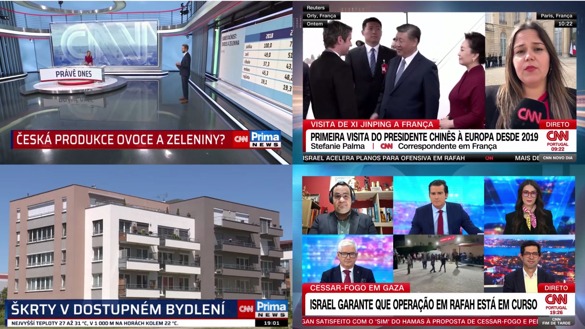 Nota. Incluem-se na figura os programas Právě Dnes (esquerda, em cima), Hlavní Zprávy (esquerda, em baixo), CNN Novo Dia (direita, em cima) e CNN Fim de Tarde (direita, em baixo). A reprodução foi autorizada pelos canais CNN Prima News e CNN Portugal.