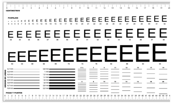 En este contexto, la estandarización de las medidas tipográficas jugó un papel fundamental en la evolución de la práctica tipográfica. Una herramienta clave en este proceso fue el tipómetro, diseñado para simplificar la conversión entre diferentes sistemas de medida, como la pica y el punto, facilitando la aplicación precisa de los parámetros tipográficos en el diseño y la impresión. Esta plantilla permitió a los impresores y diseñadores calcular con exactitud el tamaño de los caracteres, los espacios interlineales y las proporciones tipográficas, optimizando la composición de los textos y mejorando la legibilidad de los impresos. Sin embargo, en Colombia la adopción del tipómetro y otras herramientas tipográficas fue tardía y estuvo limitada por la escasa producción local de fuentes tipográficas, lo que restringió la consolidación de una tradición tipográfica propia. Este retraso contribuyó a la dependencia de modelos extranjeros y a la ausencia de un enfoque tipográfico contextualizado en el diseño gráfico nacional.