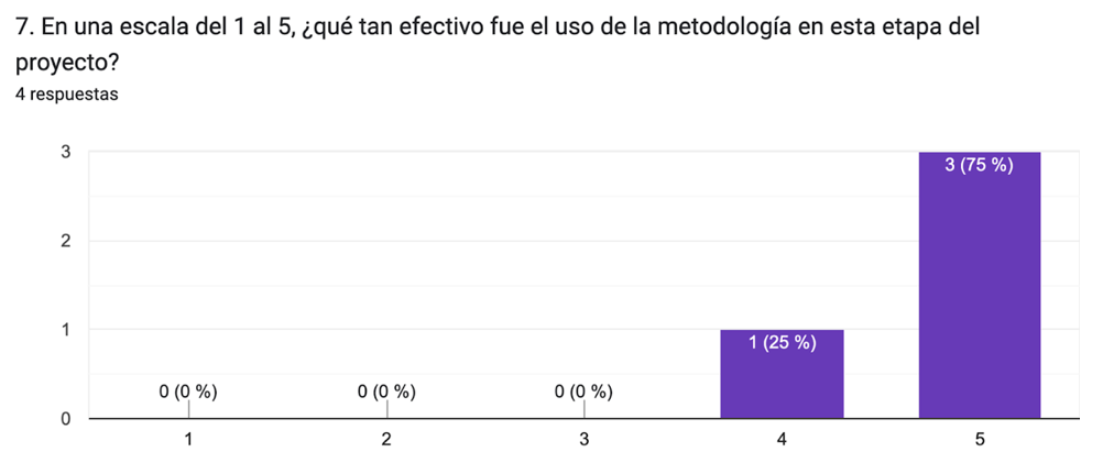 Al inicio del proyecto el 80% de los estudiantes calificó con 4 y el 20% con 5 la posibilidad de aplicar metodologías ágiles a proyectos de marca, en una escala del 1 al 5, en donde 1 es la posibilidad más baja y 5 la más alta (Figura 8). Esto refleja una alta expectativa sobre su utilidad en contextos creativos.