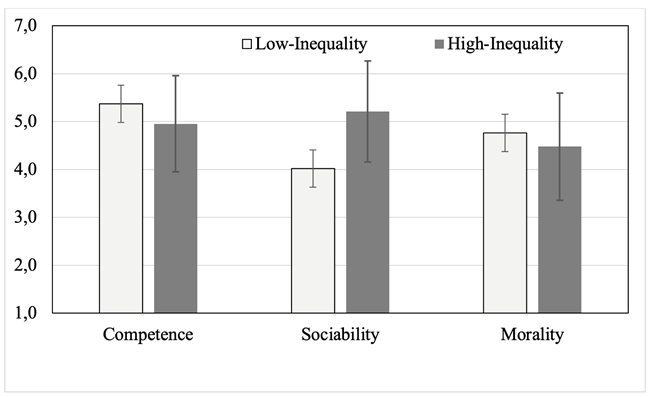 In conclusion, through this study we have found that economic inequality influences the moral dimension of stereotypes and the ambivalent pattern of countries with high and low inequality, and this moral dimension, together with competence, affects the attribution of humanity to members of different societies.