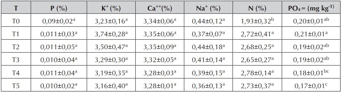 En el análisis foliar no se presentaron diferencias estadísticamente significativas (p ≥ 0,05) en el porcentaje de P, K, Ca, Na y N (tabla 3).