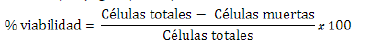 Finalmente, la viabilidad de la levadura fue determinada al inicio y al final del ensayo a partir del recuento obtenido del total de levaduras, se calculó empleando la fórmula (Mayagüez, 2007):
