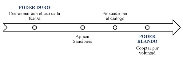 Por otra parte, Nye (1990) propone el concepto de soft power, entendido como “la habilidad diplomática de un Estado de influenciar a otro para actuar de cierta manera por medio de tres recursos: su cultura, valores políticos y finalmente sus políticas exteriores” (p. 179). En este sentido, el autor resalta la capacidad de persuasión de las estrategias de un Estado hacia otro, sin tener que recurrir a la fuerza. En específico el autor plantea que: