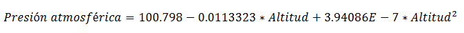 A continuación, se presenta la ecuación de regresión para obtener la presión atmosférica en función de la altura.