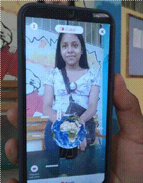 Edu juntamente con la tecnología Merge Cube.