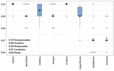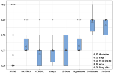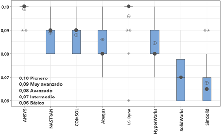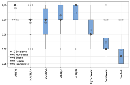 Los resultados de esta investigación revelaron diferencias significativas en las cualidades de los diversos softwares de simulación analizados. La precisión de los resultados midió la exactitud de los resultados del software en comparación con soluciones analíticas, datos experimentales o benchmarks industriales; este parámetro es crucial para tomar decisiones de diseño fiables y optimizar el rendimiento. Mayor precisión se traduce en mayor confianza en los resultados.