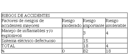 En la cualificación de riesgos de accidentes mayores manifiesta que la mayor parte de instalaciones eléctricas están deterioradas al mostrar un riesgo importante de 15.
