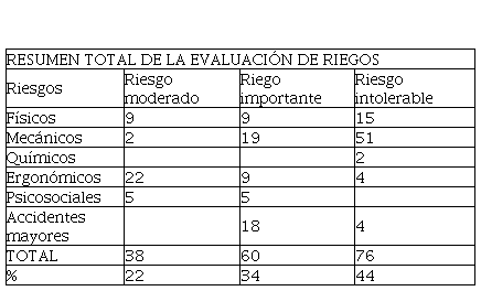 Los resultados de la evaluación en cada uno de los puestos de trabajos donde hay un precedente (accidentes e incidentes) 100 encuestados de 50 empresas, fueron identificados y evaluados en cada uno de los factores de riesgos latentes, entre ellos los riesgos psicosocial, físico, mecánico, ergonómico entre otros.