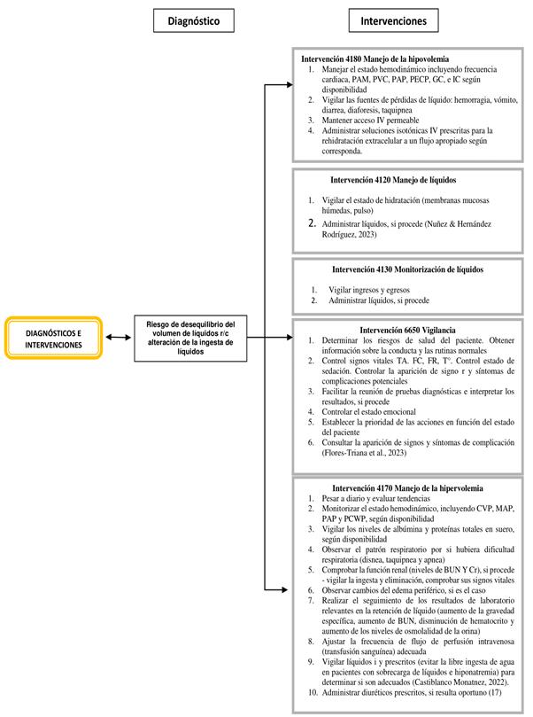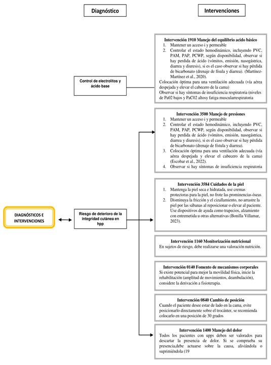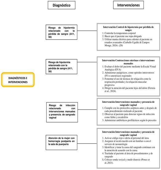 El análisis de las guías y protocolos permitió identificar las intervenciones de enfermería utilizadas en el manejo de la hemorragia postparto en pacientes hospitalizadas en la UCI. Las guías indican que los cuidados e intervenciones están dirigidos a todo el personal de salud (enfermeras y médicos). Entre las principales intervenciones realizadas por el personal de enfermería se incluyen:
