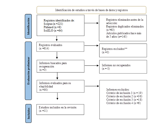 El proceso seguido en función de seleccionar los artículos para la revisión, responde a las etapas de la matriz PRISMA (Page et al., 2021), (Figura 2).