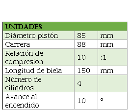 Establecimiento de parámetros: Definir los parámetros de entrada, como la velocidad angular del cigüeñal, la longitud de la biela, el diámetro del pistón, entre otros.