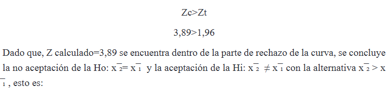 Para definir las áreas de aceptación y rechazo, nos basamos en los criterios de confianza, aplicando un intervalo de confianza del 95%. La ecuación (3) nos ayuda a determinar esta tasa de confianza.