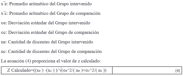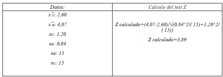 Además, se utilizó el software Minitab y Excel para el procesamiento estadístico de la información, lo que permitió analizar y procesar los datos cuantitativos tanto a nivel descriptivo como inferencial. Se calcularon medidas de tendencia central y desviación estándar, y se evaluaron las hipótesis a través de la prueba Z de dos colas, con un nivel de significancia del 5%. Por otra parte, se administraron dos cuestionarios cuyos resultados se presentaron en tablas descriptivas, para lo cual, se denominó Cuestionario 1 aplicado al Grupo de comparación; y cuestionario 2 aplicado al Grupo intervenido. Las evaluaciones contienen los mismos ítems para evitar el sesgo y asegurar que los resultados sean comparables, permitiendo así medir de manera precisa los avances o dificultades del estudiante sin que variables externas influyan en el análisis.