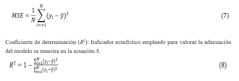 Error cuadrático medio (MSE): es el cálculo de la media de los cuadrados de los errores, presentado en la ecuación 7.
