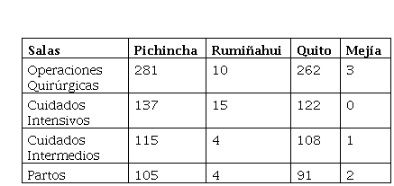 Como se observa en la tabla 1, a nivel zonal y regional, el número significativo de salas operatorias señala claramente que estos son los principales lugares de trabajo para los profesionales instrumentistas quirúrgicos. Esta alta concentración de salas operatorias implica una demanda continua de profesionales cualificados en esta área, incluidos los instrumentistas quirúrgicos. En consecuencia, se deduce que hay una cantidad considerable de oportunidades laborales disponibles para instrumentistas quirúrgicos en hospitales y clínicas de estas zonas. La fuerte demanda de servicios quirúrgicos en Pichincha sugiere una necesidad urgente de personal capacitado para satisfacer estas necesidades quirúrgicas, lo que abre el camino a oportunidades laborales estables y prometedoras para los instrumentistas quirúrgicos en estas regiones.