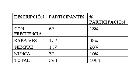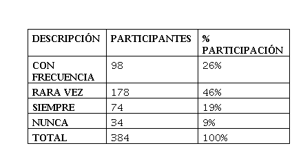 Con base en la pregunta anterior, se estima que el 43 % de los encuestados residen en la parroquia satélite del cantón Daule. Esto se debe a que los emprendimientos son más visibles en este sector. Sin embargo, las opciones faltantes denotan una buena participación a nivel de zonas, es decir, cada uno brinda una respuesta ante la necesidad de su sector.