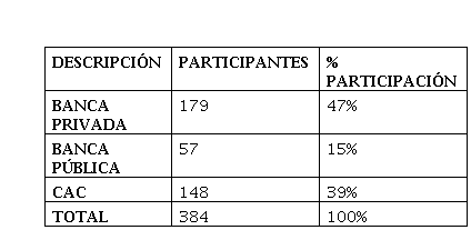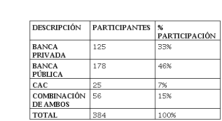 Se estima un rango del 86 % que posee una cuenta de ahorros y/o crédito entre la Banca Privada y una Cooperativa de Ahorro y Crédito (CAC). Esto se debe a la confianza que brindan estos dos tipos de instituciones, a pesar de que, para la banca pública, debe mejorar los productos y servicios que ofrece a sus clientes financieros.