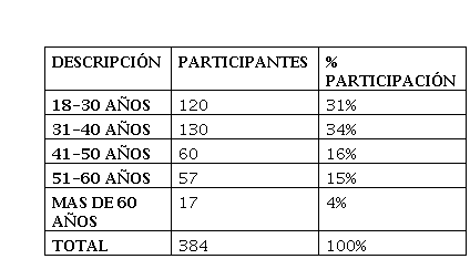 Se estima que los rangos de edad para emprender o que pertenezcan a una organización EPS se encuentra entre los 18 a 40 años, teniendo mayor madurez entre los 30 a 40 años, con un 34 % de participación