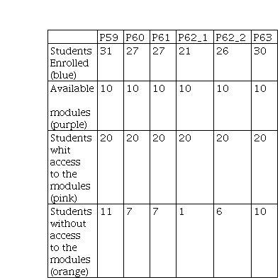 Figure 8 and Table 1 graphically represent the number of students who were left without a module in the laboratory versus the number of students enrolled. The laboratory has a capacity for 24 people, but the number of modules is 10, therefore, the practice must be done in pairs, resulting in 20 students per class. In a face-to-face manner, there are alternatives for students who do not reach modules, such as the use of these in other schedules and weekends; this incurs the use of personnel for the opening of the laboratories and of teachers who also work in other days so that they can supervise the good use of the laboratories.