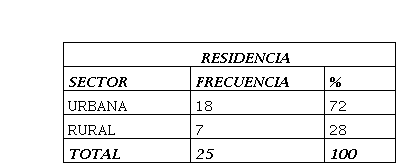Análisis: De los 25 participantes la mayoría provienen de zonas urbanas comprendiendo un 72% de la población y el 28% restante proviene de áreas rurales.