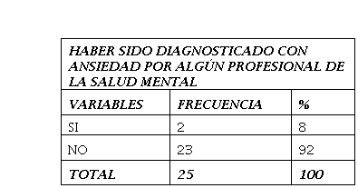 Análisis: Se puede observar que del 100% de la población de estudio, el 92% no presenta ningún un trastorno de ansiedad que afecte su labor, sin embargo, el 8% de los participantes si indicaron haber padecido crisis de ansiedad y asistir donde un profesional de la salud mental en algún momento de sus vidas.