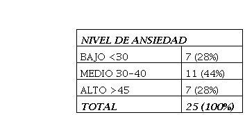 De esta manera, en la presente investigación realizada en la estación del cuerpo de bomberos de Gualaceo, se observó un alto porcentaje de ansiedad media, en base a la aplicación de reactivo IDARE como Estado, determinando la presencia de ansiedad media en un 44% y ansiedad alta en un 28%.