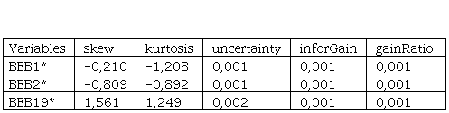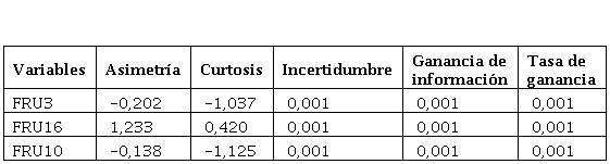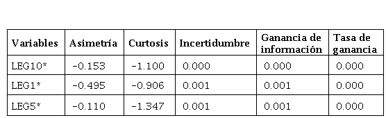 El consumo de productos lácteos es altamente recomendable para los estudiantes universitarios debido a sus beneficios nutricionales y energéticos. Estos alimentos proporcionan calcio y vitamina D, esenciales para la salud ósea y la función cognitiva. Además, las proteínas de alta calidad presentes en los lácteos contribuyen al desarrollo muscular y la síntesis de neurotransmisores siendo imprescindibles en el alumnado. La energía proporcionada por los carbohidratos en la leche ayuda a mantener niveles de energía estables durante el día, lo que es crucial para el enfoque y la productividad académica. Además, los micronutrientes como la riboflavina y la vitamina B12 están relacionados con la función cerebral y la memoria (Logroño et al., 2021) . A efectos de tener unos resultados de calidad se han valorado las variables de acuerdo con el tipo de alimento que los encuestados han usado en los últimos tres meses. De ahí que se ha establecido el valor significativo de las variables según el grado de incertidumbre de estas. El primer grupo relacionado con los lácteos, por ejemplo, se han seleccionado tres variables presentadas en la Tabla 1.