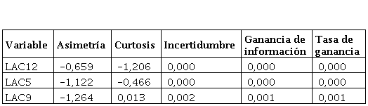 De acuerdo con estos resultados las tres variables que fueron seleccionadas hacen evidente el consumo de productos ya elaborados, por ejemplo, la variable LAC12 se relaciona con el consumo de flan o natillas, LAC5 con natas o cremas de leche y LAC9 con cuajadas.