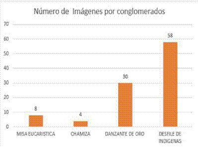 El conglomerado denominado “misa eucarística” muestra un total de 8 imágenes codificadas designadas y de “E0001 al E0008. de la misma forma el conglomerado “Chamiza”, en este Ecaso, el índice es bajo ya que se recolectó un total de 4 imágenes teniendo como codificación.