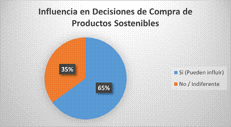 Influencia en Decisiones de Compra de Productos Sostenibles (Figura 2): Un 65% de los participantes manifestó que los influencers pueden influir directamente en sus decisiones de compra de productos sostenibles, destacando su potencial impacto en este segmento de mercado.