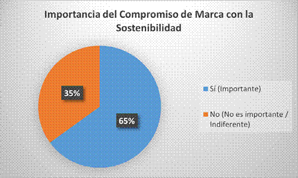 Importancia del Compromiso de Marca con la Sostenibilidad (Figura 3): Un 65% de los encuestados consideró que el compromiso de una marca con la sostenibilidad es un factor importante al momento de elegir productos, lo que subraya la valoración creciente de este aspecto por parte de los consumidores.