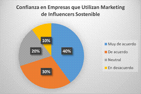 Confianza en Empresas que Utilizan Marketing de Influencers Sostenible (Figura 4): La credibilidad del marketing de influencers en el ámbito sostenible se vio reforzada, ya que un 70% de los participantes se mostró de acuerdo o muy de acuerdo en que las empresas que utilizan esta estrategia son más confiables.