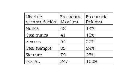Sin embargo, el 14% de las personas encuestadas escogieron la alternativa de “Nunca” y el 12% contestó con la alternativa de “Casi nunca”, dando un total del 26% de clientes que no llegarían a recomendarían la marca; esta información permite que se explore las causas por la cual tiene una perceptiva negativa, ya sea en la relación de la calidad del producto, la atención al cliente o el servicio que se llega a prestar dentro del establecimiento.