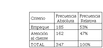 De acuerdo a los resultados de la Tabla 3, se determina que un 53% de los encuestados considera que MM Wings debería mejorar su empaque dado que a partir de un diseño atractivo, funcional y distintivo no solo atraerá a futuros clientes, sino que también mejorará el reconocimiento de la marca, mientras que un 47% indican la atención al cliente debería ser más importante debido a ser una variable dentro del sistema de gestión, para incrementar la satisfacción y confianza del consumidor. El servicio debe ser rápido, amigable y efectivo, para poder marcar una diferencia en las experiencias que haya tenido el cliente, para fortalecer la relación emocional con la marca y aumentar la probabilidad de que sea recomendado.