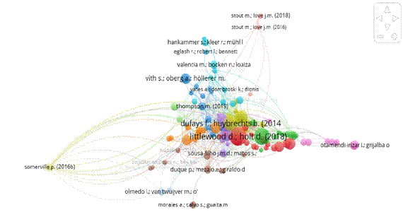 Esta etapa del análisis implicó la incorporación de un análisis de acoplamiento bibliográfico. Este acoplamiento del análisis proporcionó un medio para identificar los estudios más impactantes de un campo de interés dado, mediante la cartografía de relaciones concordantes dentro y entre documentos científicos basados en citas recíprocas. Estas relaciones fueron luego representadas en una red de citas elegidas por su alcance y claridad para la ilustración del dominio académico en cuestión ( Ayaviri-Nina et al., 2024).